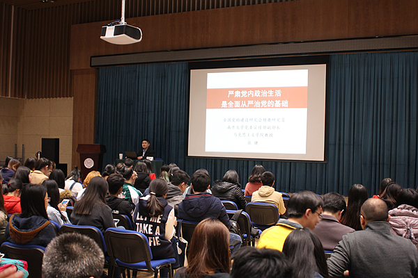 南开新闻网讯(通讯员 张志强)近日,由马克思主义学院、76net必赢官网、旅游与服务学院和汉语言文化学院联合举办的南开大学分党校积极分子培训班第二次集体学习在旅游学院多功能厅举行。全国党建研究会特邀研究员、南开大学党委宣传部副部长、校史研究室主任、马克思主义学院张健教授作了题为《严肃党内政治生活是全面从严治党的基础——党的十八届六中全会精神解读》的辅导报告,来自四个学院的170余名入党积极分子参加了报告会。