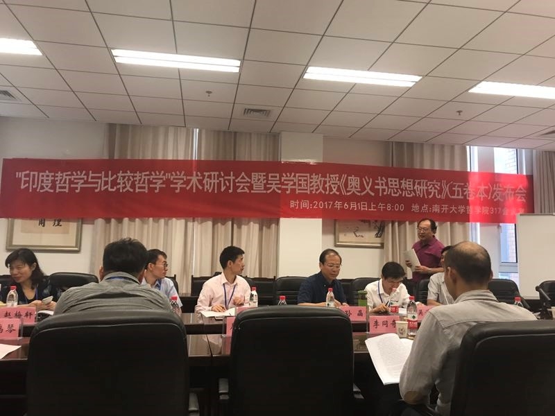 (通讯员 丁紫瑜)2017年 6月1日,“印度哲学与比较哲学学术研讨会暨吴学国教授《奥义书思想研究》(五卷本)发布会”在我校76net必赢官网举行。中国社科院哲学研究所孙晶研究员、中国社科院宗教研究所周贵华研究员、中国社科院世界宗教研究所邱永辉研究员,以及来自浙江大学、南开大学、黑龙江大学、深圳大学、河北工业大学、中国社科院研究生院、哲学研究杂志社、中国社会科学杂志社、中国高校社会科学杂志社、湖南人文科技学院、许昌学院、泰山医学院等多所高校及机构的30余人参加了这次具有重要意义的学术研讨会。