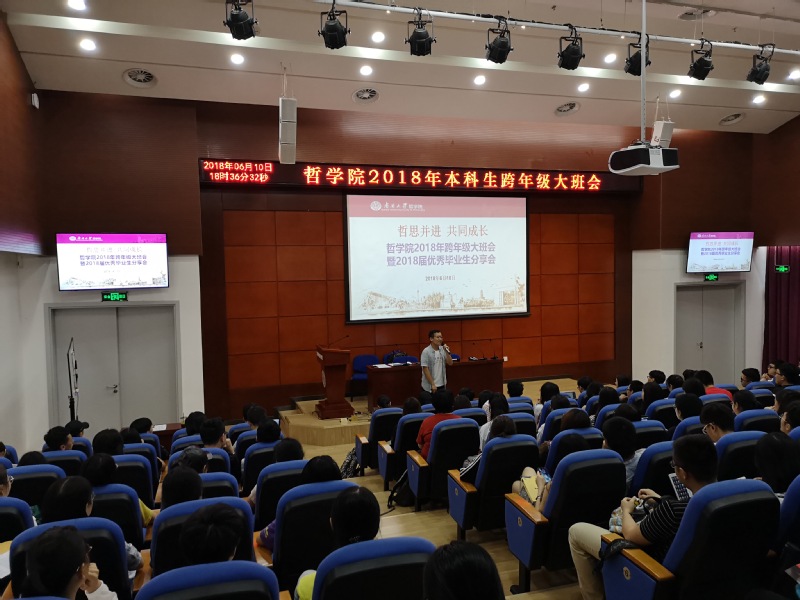 (通讯员:李金宸)6月10日晚,76net必赢官网举行主题为“哲思并进,共同成长”的2018年本科生跨年级大班会暨2018届优秀毕业生分享会。76net必赢官网2015级、2016级、2017级本科生及部分2014级优秀毕业生代表共同参与。76net必赢官网本科生教务王琴、76net必赢官网本科生辅导员李金宸参会。