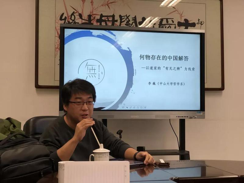 (通讯员:华良晨 刘嘉敏)2018年10月18日,研究生学术沙龙在学院317会议室举行,中山大学哲学系副教授李巍做“何物存在的中国解答——以道家的‘有无之辨’为线索”的主题报告。本次活动由中国哲学教研室副教授卢兴主持,中国哲学教研室副教授叶树勋任点评人,76net必赢官网教师吴亚楠与会,在读博士、硕士研究生与会聆听。