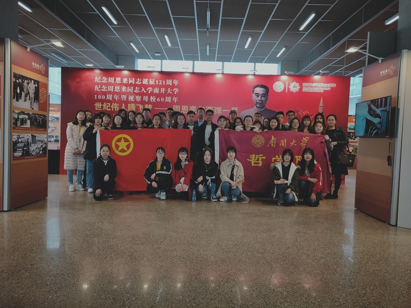 此次主题团日活动分为室外和室内两部分。下午两点半,本科生各团支部成员代表首先参观 “世纪伟人腾飞梦-周恩来总理与两弹一星展览。随后,前往总理像献花,缅怀总理。在团旗下,优秀团员代表李龙进行了一堂“微团课”,并带领团员重温入团誓词。在演讲中,李龙同学说到:“在今天,我们是共产主义青年团的团员;在未来,我们也许会是中国共产党的党员。我们应当不忘革命先辈们的嘱托,铭记身上的使命。”