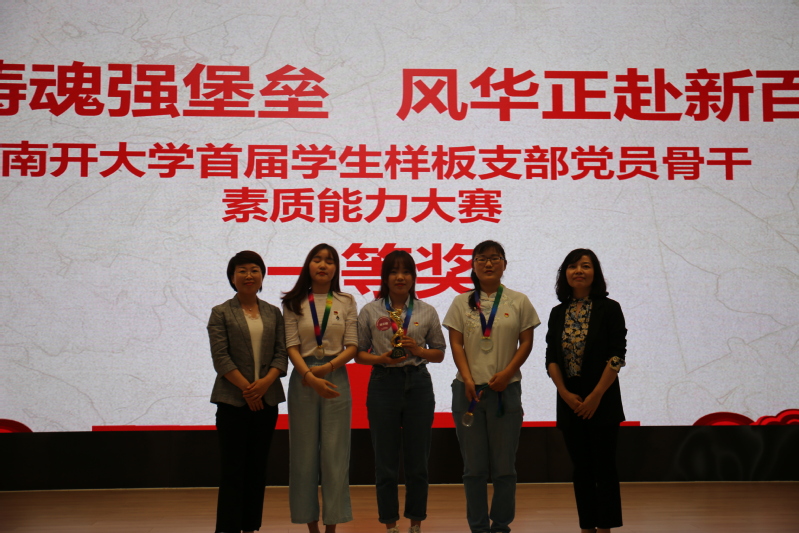 (通讯员 田佳佳)5月29日,为深入推进党史学习教育,落实学校党委“对标争先”培育行动计划,发挥样板党支部的示范带动作用,提升学生党员骨干素质能力,推动学生党支部标准化、规范化建设,党委组织部、学工部、研工部、76net必赢官网党委共同主办“凝心铸魂强堡垒,风华正赴新百年”南开大学首届学生样板支部党员骨干素质能力大赛,来自全校学生样板党支部联合体的八支队伍参加比赛,学工部副部长何璟炜、研工部副部长霍丽敏等九名长期指导学生党建的教师担任赛事评委,天津大学、天津师范大学师生代表到场观赛。
