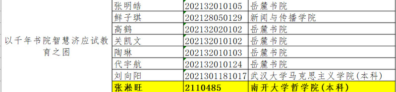 根据共青团湖南大学委员会2023年3月27日发布的《关于第十八届“挑战杯”湖南大学选拔赛获奖名单的公示》,张淞旺同学作为《以千年书院智慧济应试教育之困》项目组成员,荣获一等奖。