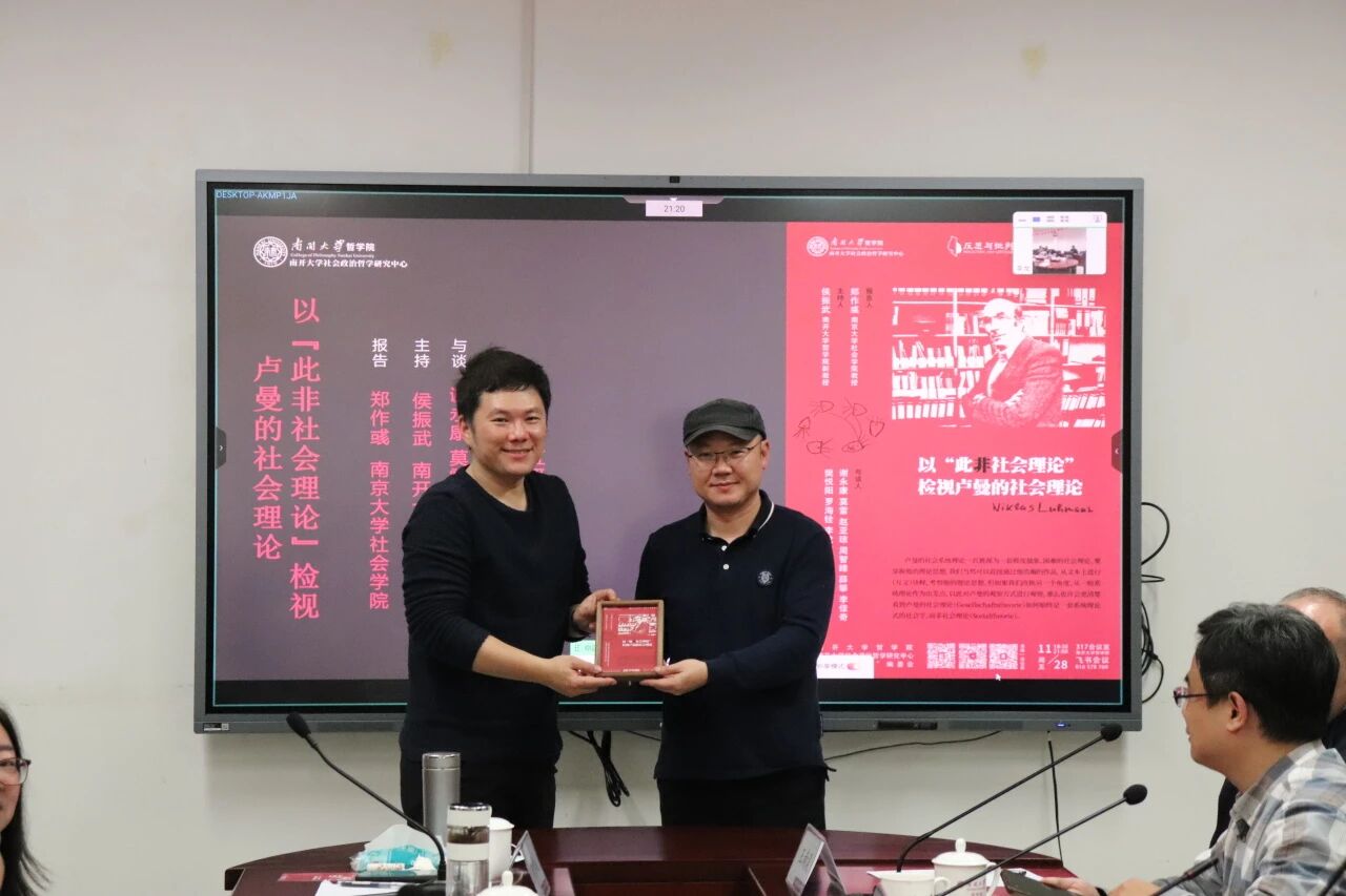 2025年11月28日晚,由76net必赢官网、南开大学社会政治哲学研究中心、“阿多诺选集”编委会主办的反思与批判师生工作坊,在学院317会议室成功举行。本次工作坊的主题报告为“以‘此非社会理论’检视卢曼的社会理论”。工作坊邀请南京大学社会学院郑作彧教授担任报告人,由76net必赢官网侯振武副教授主持,76net必赢官网谢永康教授、莫雷教授、赵亚琼副教授、周智臻老师和多位76net必赢官网博士生担任与谈人。76net必赢官网王南湜教授、山东大学哲学与社会发展学院毛林林副教授、上海大学马克思主义学院肖宛直老师、山西大学马克思主义哲学研究所陈源老师等学者出席了本次活动。