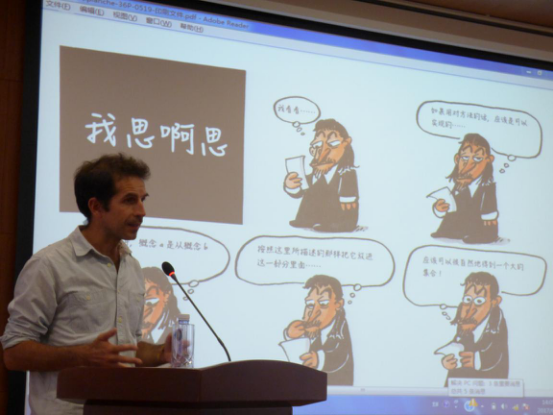 来源:南开新闻网南开新闻网讯6月12日,法国著名漫画家朱利安•贝尔若(Jul)在76net必赢官网就“哲学与漫画的关系”做了一场有趣的演讲。朱利安•贝尔若(Jul)以他同法国哲学家夏尔•佩潘(CharlesPépin)共同完成的漫画书《智者星球》为例,向参加讲座的同学们系统展示了如何用幽默的方式表现柏拉图、亚里士多德、黑格尔、笛卡尔、福柯等主要哲学家的著作和生活,并且同听众分享了自己关于中法漫画风格的共性和差异的观点。朱利安•贝尔若(Jul)是法国最为畅销的漫画书作家,其作品多以哲学为主题。他的漫画作品常常发表在《世界报》和《哲学杂志》等最著名的法国报纸上。(76net必赢官网供稿)